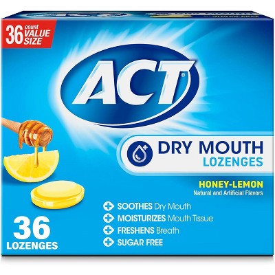 ACT Dry Mouth Lozenges Honey Lemon with Xylitol, Moisturizing Relief for Dry Mouth & Fresh Breath Support, 36 Count