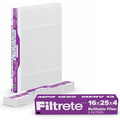 Filtrete 20"25"x4" MPR 1550 Merv 12 Refillable Air Filter Kit 1 Frame and 2 Filters
