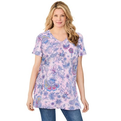 Woman Within Perfect Printed Short-Sleeve Crewneck Tee