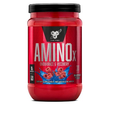 BSN Amino X Muscle Recovery & Endurance Powder with BCAAs, 10 Grams of Amino Acids, Keto Friendly, Caffeine Free, Flavor: Blue Raspberry, 30 servings