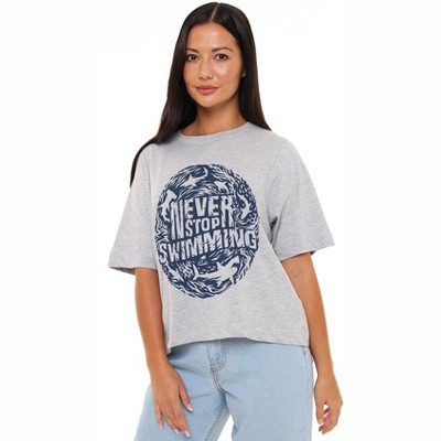 Women's Shark Week Officially Licensed Never Stop Swimming Boxy Cropped T-Shirt