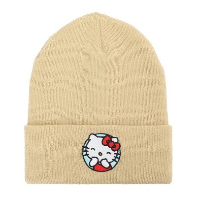 Hello Kitty Blue Circle Embroidered Khaki Cuff Beanie