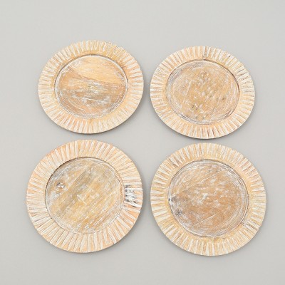 ChicFurnit Dining Plates Wood Plate Decorative Dinner Plate Dinnerware Wood Tableware for Home Kitchen and Party Use, White, 13"*13"*1"