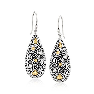 Ross-Simons 13-14mm Black Cultured Pearl Drop Earrings in 14kt Yellow Gold