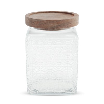 Unique Bargains Fan Shape Pattern Decorative Glass Jar with Lid 1 Pc