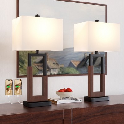Franklin Iron Works Modern Industrial Table Lamp 27 1/2" Tall with USB Charging Port Oil Rubbed Bronze Double Fabric Shade for Bedroom Living Room