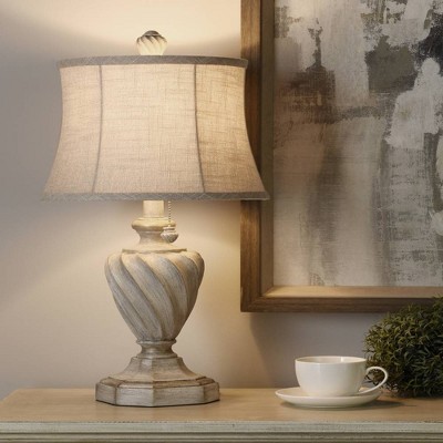 360 Lighting Claude Rustic Farmhouse Accent Table Lamps Set of 2 with Round Riser 22" High Beige Washed Linen Drum Shade for Bedroom Living Room House