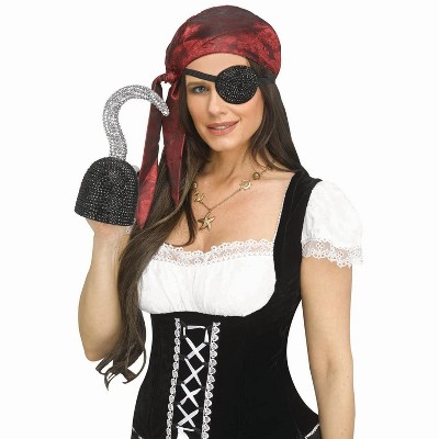 Black Plastic Pirate Hook Hand with Rhinestone Bling Costume Accessory