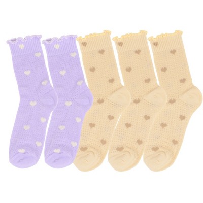 Anna-Kaci Women's 5-Pair Set Frilly Crew Socks with Heart Pattern and Ruffle Trim Breathable Knit Design for Flats or Loafers