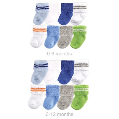 Luvable Friends Infant Boy Grow with Me Cotton Terry Socks, Athletic, 0-6 and 6-12 Months