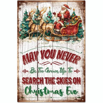 Lomsoe Santa Claus and Elk Tin Sign 12¡Á8inch "May You Never Be Too Grown Up To Search The Skies On Christmas Eve" Funny Tin Signs Christmas Gift