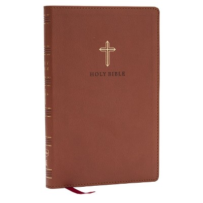 NKJV Holy Bible, Ultra Thinline, Brown Leathersoft, Red Letter, Comfort Print - by Thomas Nelson (Leather Bound)