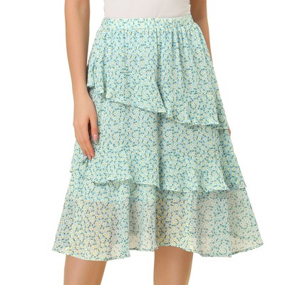 INSPIRE CHIC Women's Floral Layered Elastic Waist Chiffon Ruffle Midi Skirt