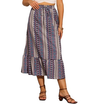INSPIRE CHIC Women's High Waist Floral Summer Casual Ruffle Hem Tie Knot Lined A-Line Midi Skirts
