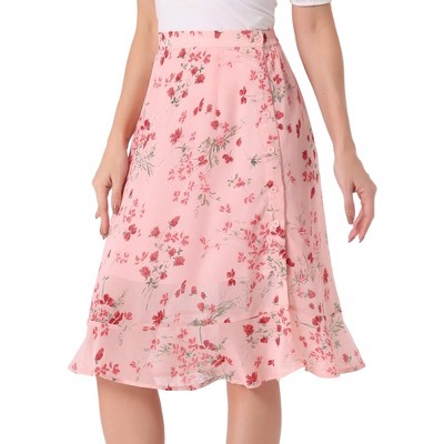 INSPIRE CHIC Women's High Waist Ruffle Hem Midi Length Mermaid Skirt