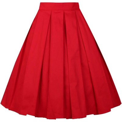 LEVEN SIXTEEN Women's Vintage Floral Midi Skirt - Pleated A-Line Skirt with Pockets A-red