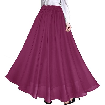 LEVEN SIXTEEN Women's Boho Beach Maxi Skirt - High Waist Flowy Pleated & Ruffle Long Skirt with Pockets Purple