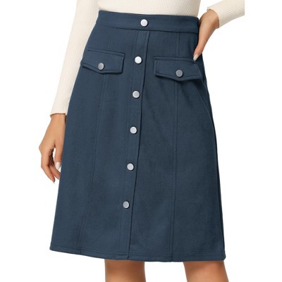 INSPIRE CHIC Women's Pencil Tweed Buttons Decor Side Zipper Winter Classic Skirts