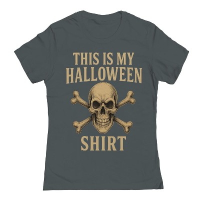 Rerun Island Women My Halloween Pajama Shirt Cross Skull Short Sleeve Graphic Cotton Baby Tee