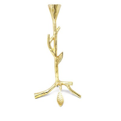 Classic Touch Gold Taper Candle Holder with Branch Design, 2 sizes