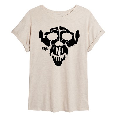 Women's - Instant Message - Half Skull Half Flowers Oversized Graphic T-Shirt