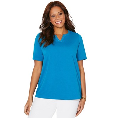 Catherines Petite Suprema Embroidered Notch-Neck Tee