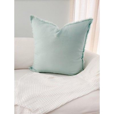 Aqua Blue Fringe Soft Linen Pillow
