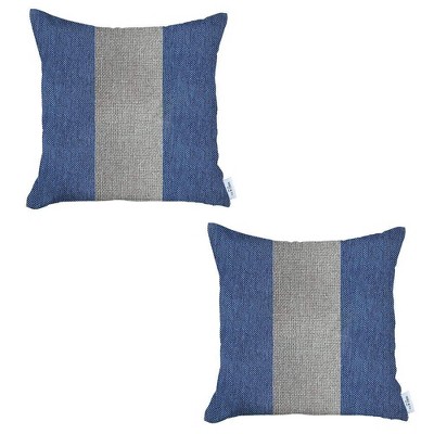 HomeRoots Set of Two 18" Blue And Gray Color Block Throw Pillows
