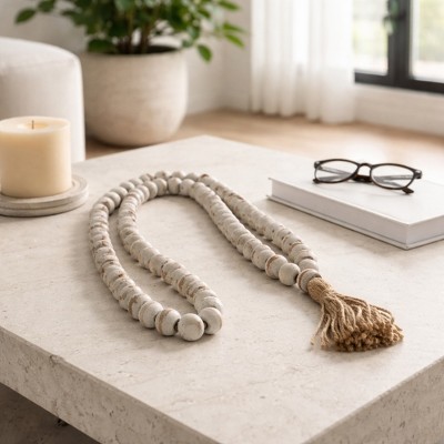 Decorative Wooden Beads Garland for Home Decor and Bathroom - Shelf and Coffee Table Decor Display Statement for Layered Surfaces - 1", Brown