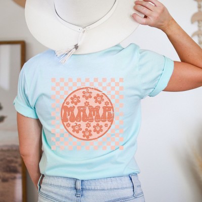 Simply Sage Market Checkered Mama Flowers Front and Back Print Short Sleeve Tee