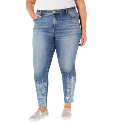I.N.C International Concepts Womens Foil Hem Skinny Fit Jeans