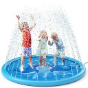 Joyfy 5ft Blue Splash Pad Sprinkler, Non-Slip Outdoor Water Splash Mat, Backyard Fountain Pool Water Games Mat for Kids Dogs Summer Fun