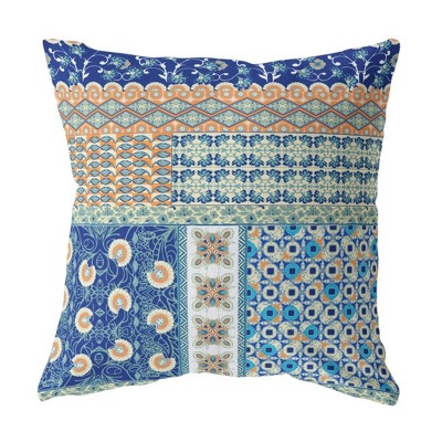 16"X16" Blue And Orange Microsuede Patchwork Blown Seam Pillow