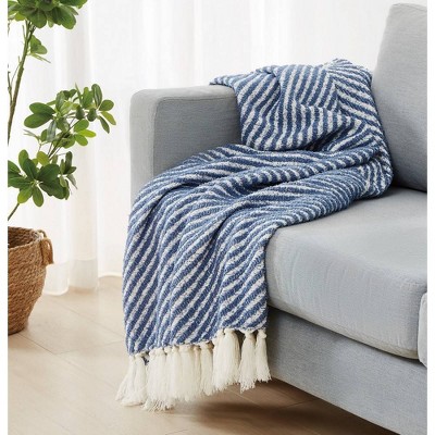 Brooklyn Loom 50"x70" Diagonal Chenille Stripe Throw Blue