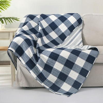 Embroidered Swiss Dot White and Navy Quilted Throw - Levtex Home