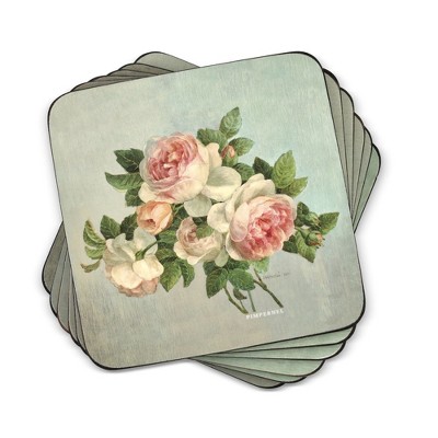 Pimpernel Antique Roses Coasters - Set of 6 (4” x 4”), Cork, Elegant Floral Design, Protects Surfaces from Spills, Easy to Clean