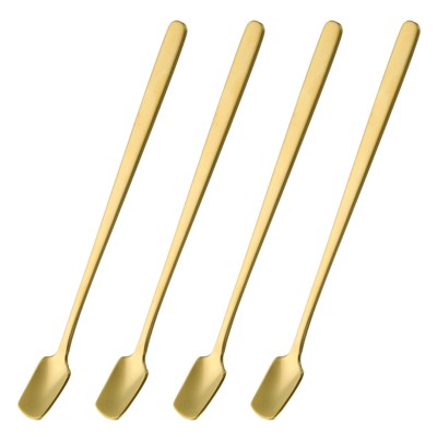 Unique Bargains Square Head Stainless Steel Long Handle Coffee Spoon 4 Pcs