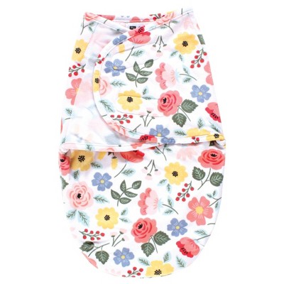 Hudson Baby Infant Girl Plush Faux Fur Swaddle Wrap, Vintage Blossom, 0-3 Months