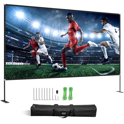 VEVOR Projector Screen with Stand 150inch Portable Movie Screen 16:9 4K HD Wide Angle Outdoor Projector Screen Stand, Black&White