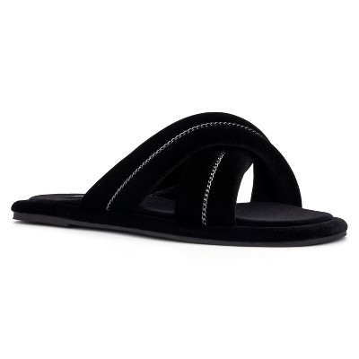 Dearfoams Women's Jessica Bows Furry Crossband Slide Slipper