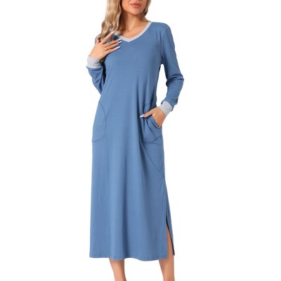 cheibear Women's Long Sleeve V Neck Soft Sleep Dress with Pockets