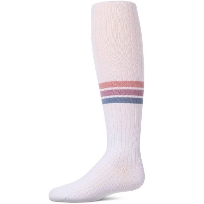 Memoi Girls Triple-Stripe Ribbed Cotton-Rich Varsity Sweater Tights