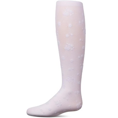 Memoi Girls Opaque Floral Flocked Tights White 2-4