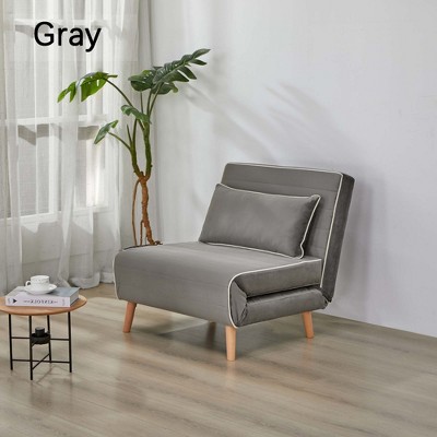 TiramisuBest 55" Convertible Chair Bed,3 Fold Sleeper Chair with Adjustable Backrest & Pillow, Velvet Chaise Lounge Sofa for Home & Office,Grey