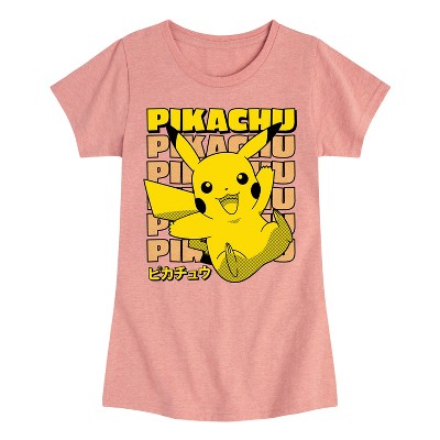 Girls' - Pokémon - Pikachu Stack Katakana- Girls Fitted Short Sleeve T-Shirt Fitted Short Sleeve Graphic T-Shirt