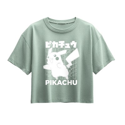 Girls' - Pokémon - Pikachu Kanji Short Sleeve Boxy Graphic T-Shirt