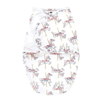 Hudson Baby Infant Girl Plush Faux Fur Swaddle Wrap, Carousel Horse, 0-3 Months