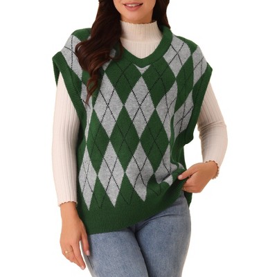 INSPIRE CHIC Women's Round Neck Sleeveless Houndstooth Plaid Knitted Sweater Vest