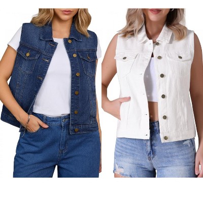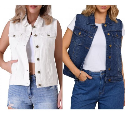 Women's Sleeveless Denim Vest - Deep V-Neck Button-Front Fitted Waistcoat for Casual Wear