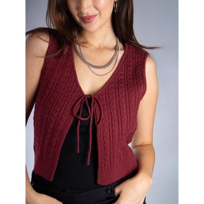 Jess by Meiko Women's Lightweight Cable Knit Tie Vest